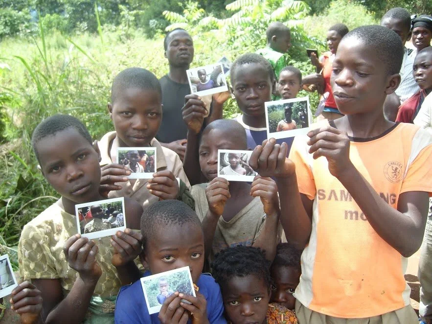 We stopped near a village to take instant portraits the day we left the forest. Our driver explained the instant portraits in Chichewa to the villagers and a few agreed to photographs. I took photos and started handing them out. People were now really starting to like their portraits. More and more children showed up and they started raising their hands wanting to be next. I took the portrait of a small boy wearing a New York City t-shirt and a small girl with a baby on her back with elaborate hair. My friends in the jeep were opening up new film packs as fast as I finished them. The boy with the NYC shirt raised his hand to be photographed. I was sure I already got him, but I did not see him holding a photo. Was I about to take his portrait before but ran out of film? I took a photo and gave it to him. I expected that the kids were hiding their photos so that I would take 2nd ones for them. I asked our driver to explain one portrait per person and some order was established. The driver said that everybody had one now and that we were good to go. I grabbed my digital camera to take photos of kids holding the instant portraits and then I started to see a few of them holding doubles!