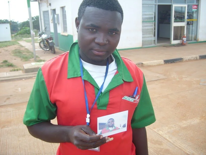 At a gas station on the road from Ntchisi to Lilongwe we stopped to check our tires. An attendant walked over to my open window to say hello. I asked if he would like to have his photo taken and he said sure. The attendant was very grateful for the photo and asked if a second one could be made. Unfortunately because it was still early in the trip I said I could only do one photo so that I would not run out of film.